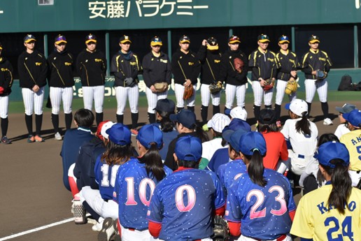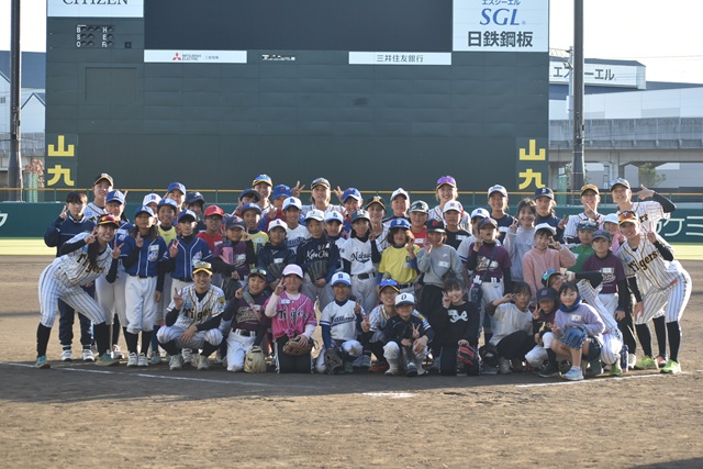 12月13日(土)に日鉄鋼板 SGLスタジアム 尼崎にて兵庫県内の小・中学生の女子を対象に、阪神タイガースWomenの選手・スタッフたちによる野球教室「未来につなぐ トライアルべ-スボール」を開催しました。