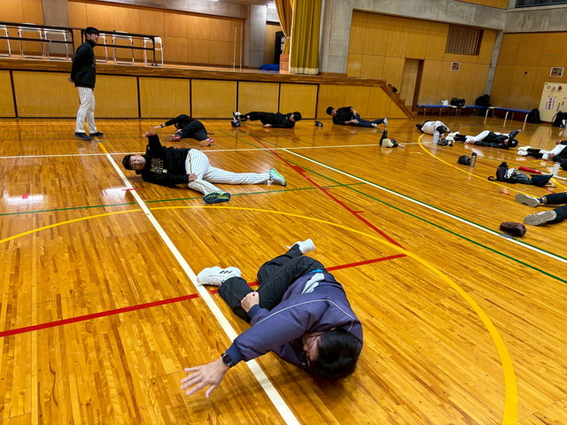 講師からは練習メニューの提案のほか、技術向上に重要な体の部位のストレッチ・トレーニング方法の指導、さらには中学生への実技指導を交えた指導方法の講習・レクチャーを行いました。